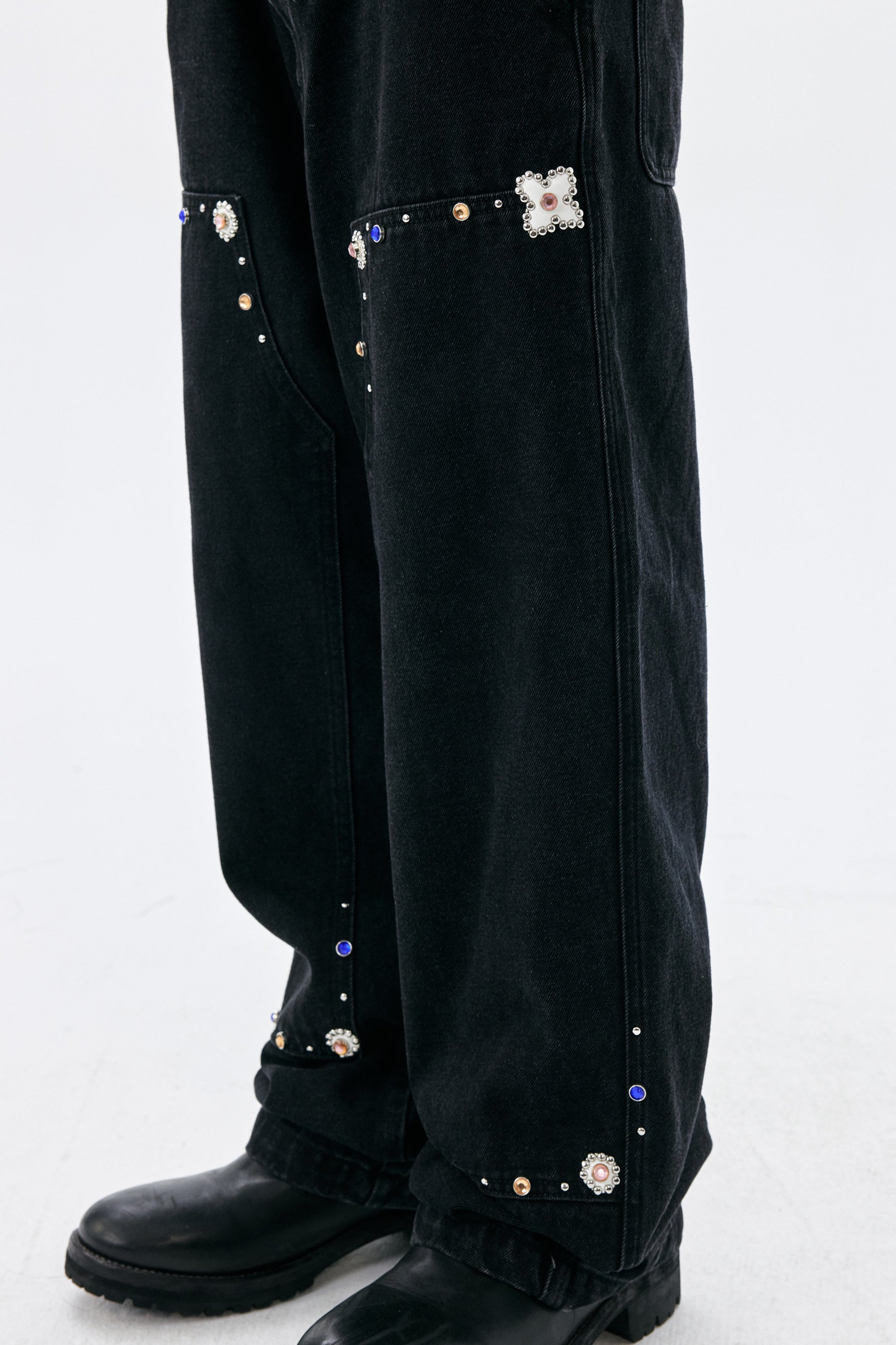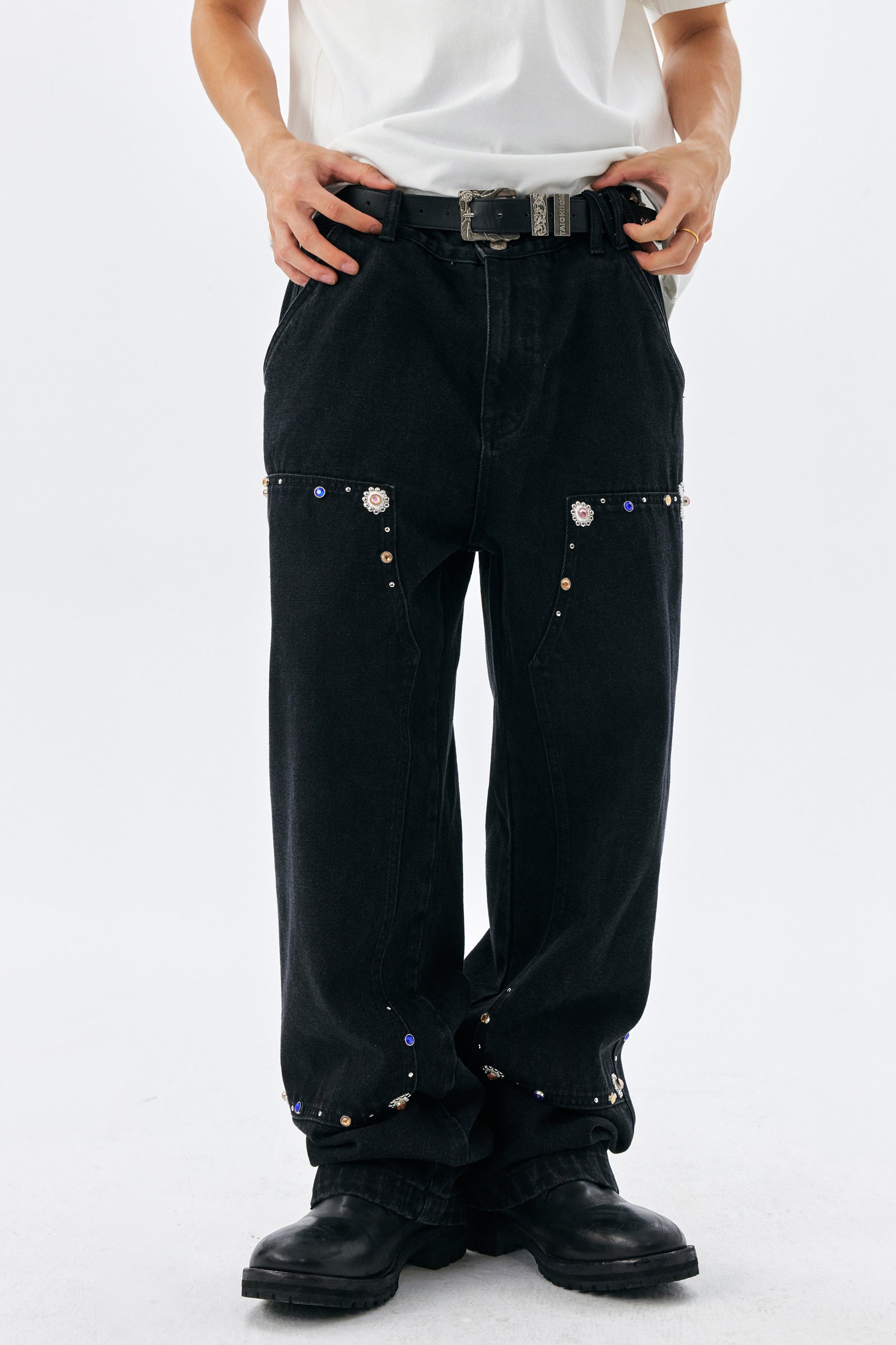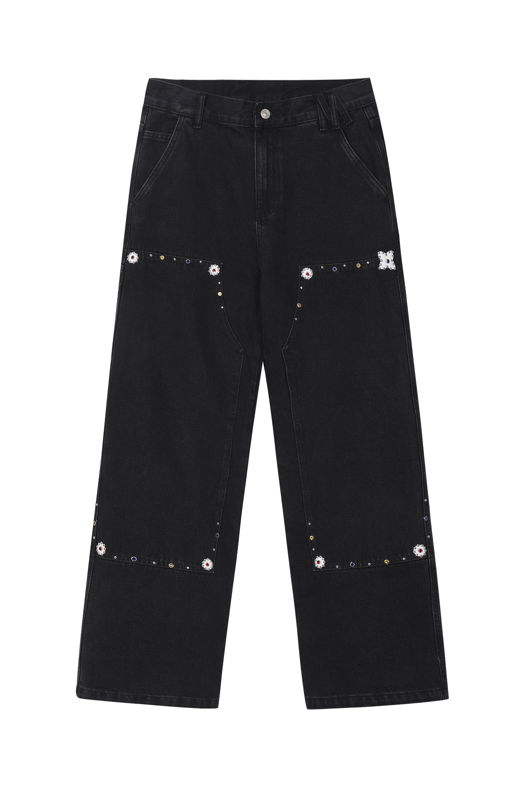 MEDM Workwear Jeans combine durable cotton-cellulose blend fabric with functional design elements inspired by professional workwear aesthetics. The straight-leg silhouette offers a timeless fit, while decorative beading at the knee adds contemporary visual interest. Traditional belt loops ensure secure fastening and styling versatility. Engineered for both durability and comfort, these jeans transition seamlessly from utilitarian wear to casual everyday styling.
