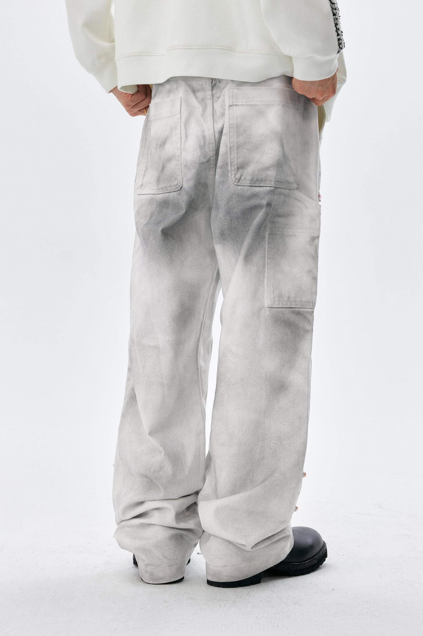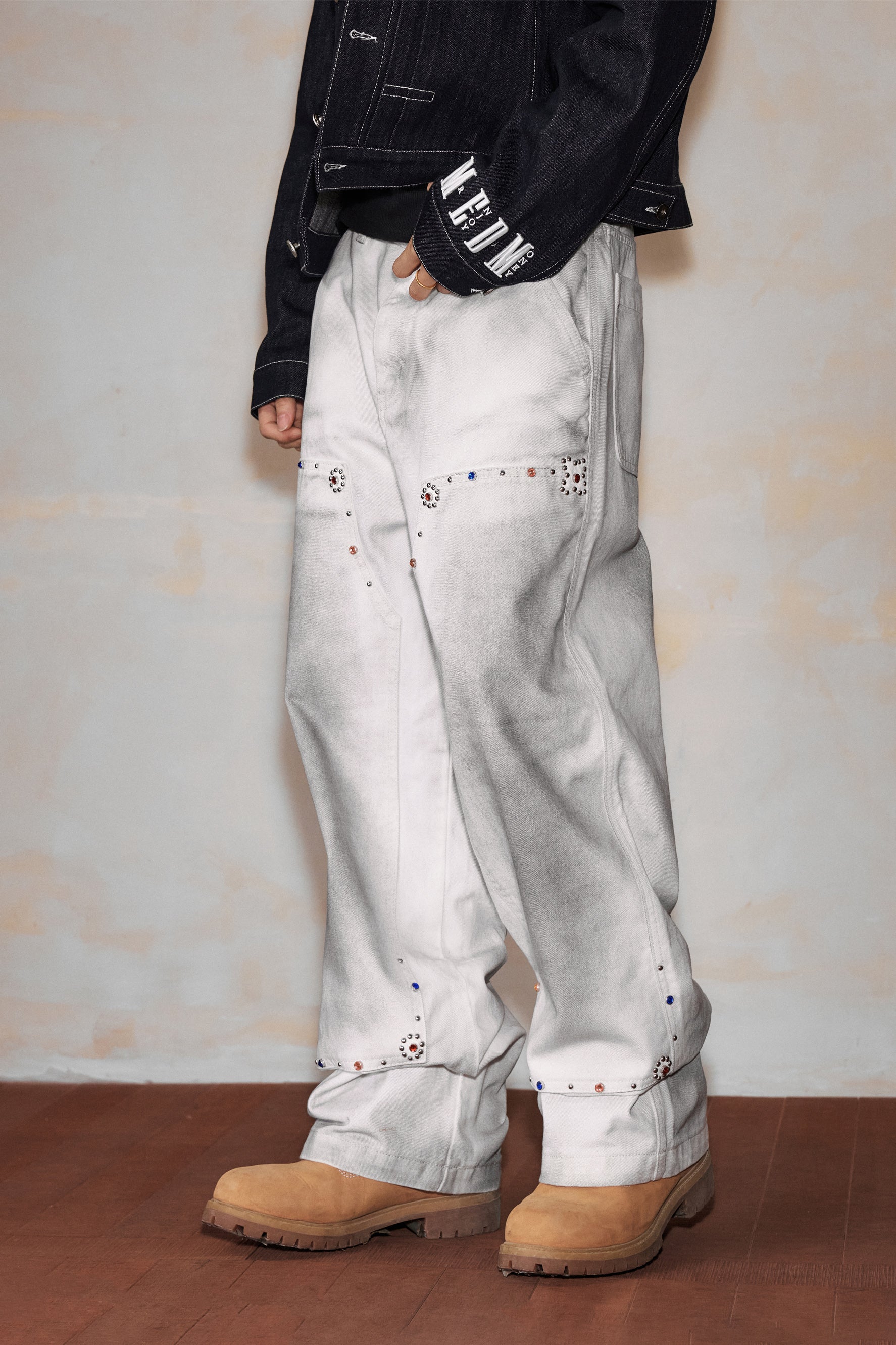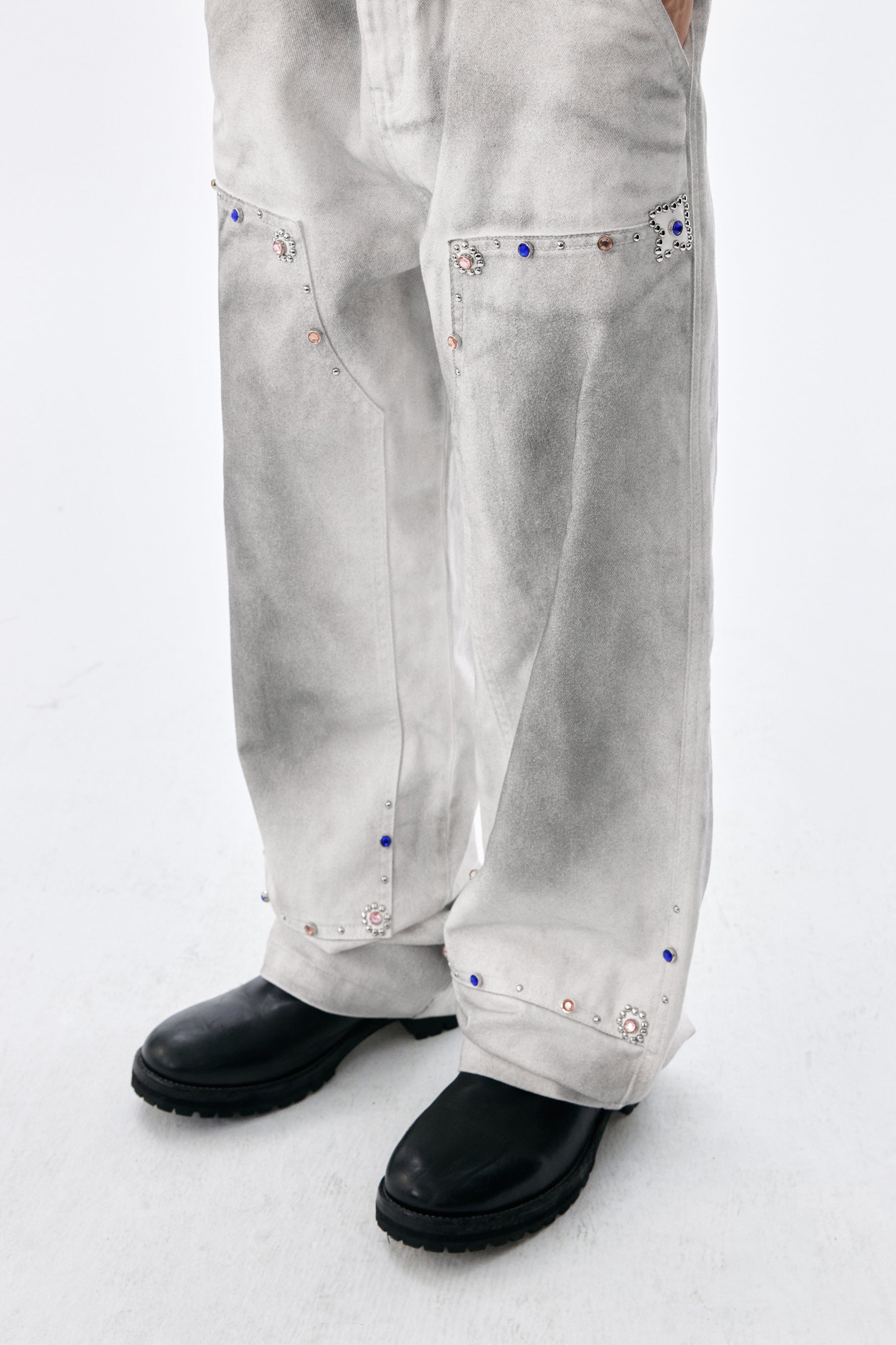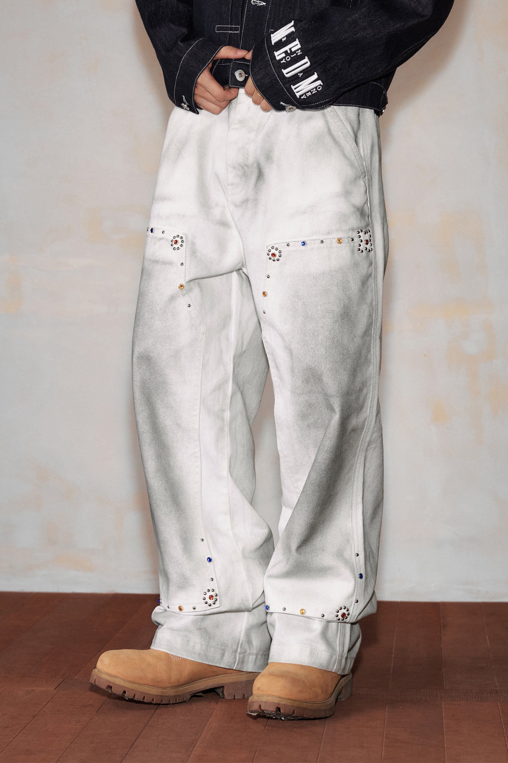 MEDM Workwear Jeans combine durable cotton-cellulose blend fabric with functional design elements inspired by professional workwear aesthetics. The straight-leg silhouette offers a timeless fit, while decorative beading at the knee adds contemporary visual interest. Traditional belt loops ensure secure fastening and styling versatility. Engineered for both durability and comfort, these jeans transition seamlessly from utilitarian wear to casual everyday styling.