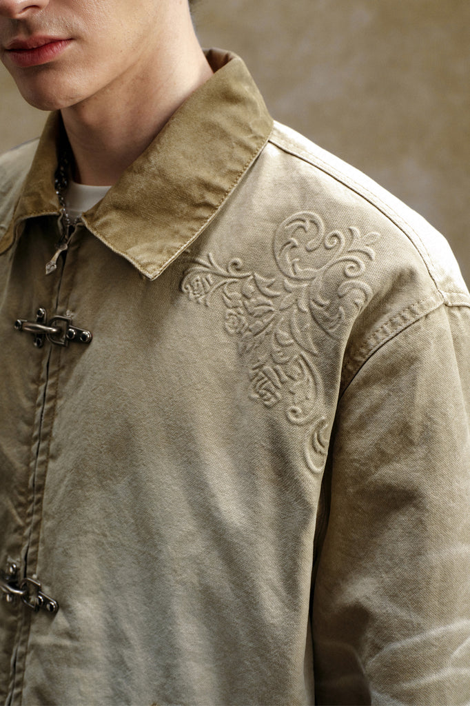 Crafted from durable 420 g heavy organic cotton, the YADCREW Embossed Workwear Jacket combines robustness with sustainability. Its embossed texture adds depth and character, while the washed effect gives a naturally worn-in look. Featuring sturdy aircraft buttons, this jacket delivers both functional strength and distinctive style, ideal for those seeking expert-level quality in workwear.