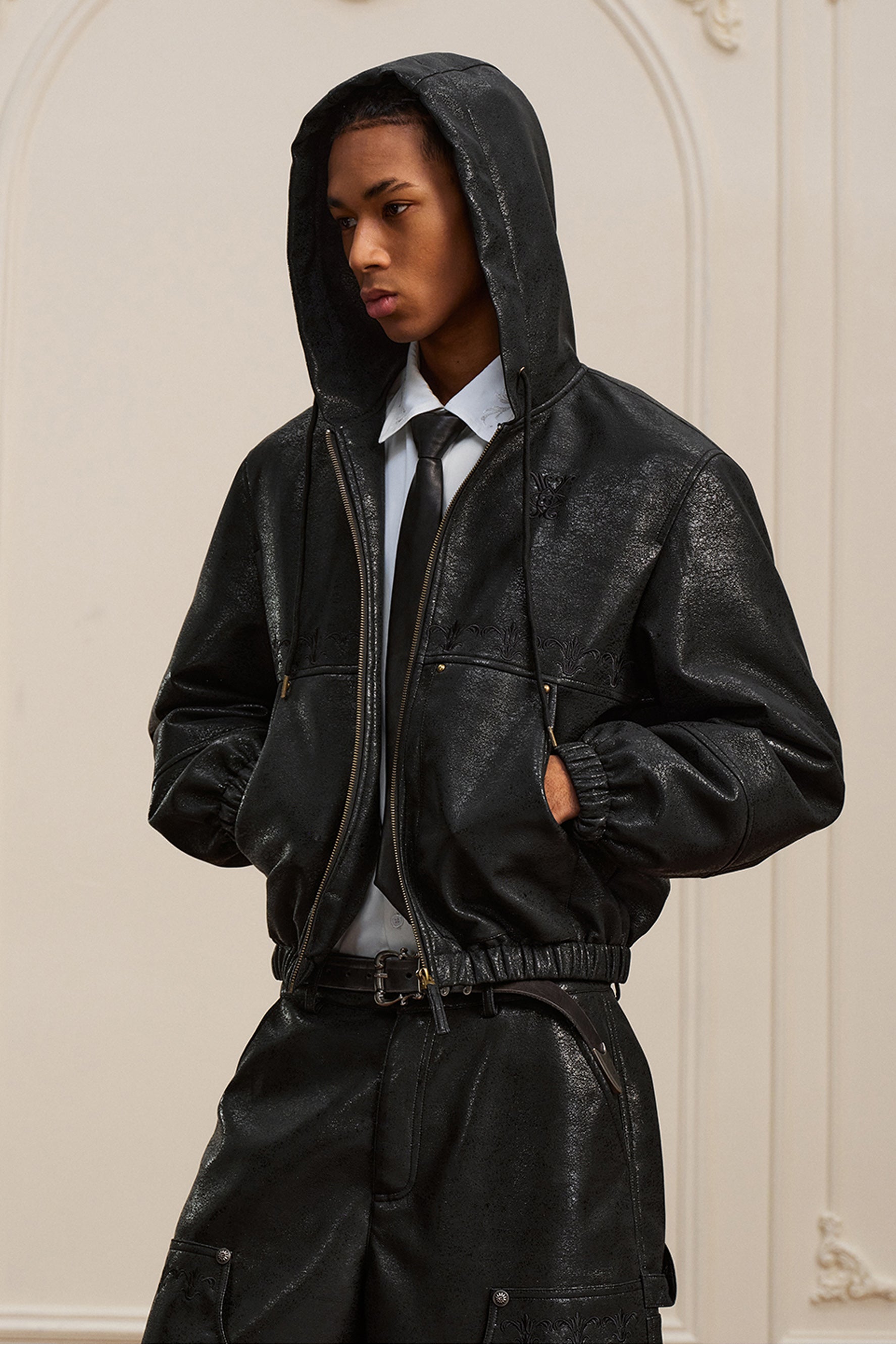The YADCREW Glitter Leather Hoodie combines contemporary streetwear with eye-catching design. Crafted from durable polyester fiber with a striking crackle glitter leather finish, this hooded piece delivers visual impact with practical functionality. The secure zip-up closure ensures easy layering, while dual front pockets provide convenient storage. Perfect for those seeking a statement piece that balances style with everyday wearability.