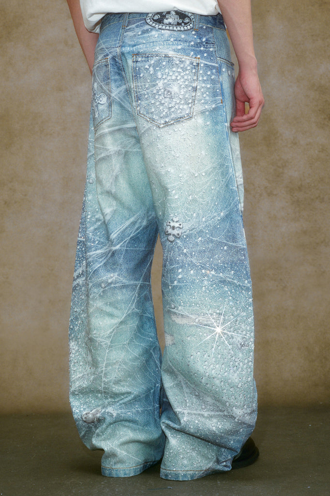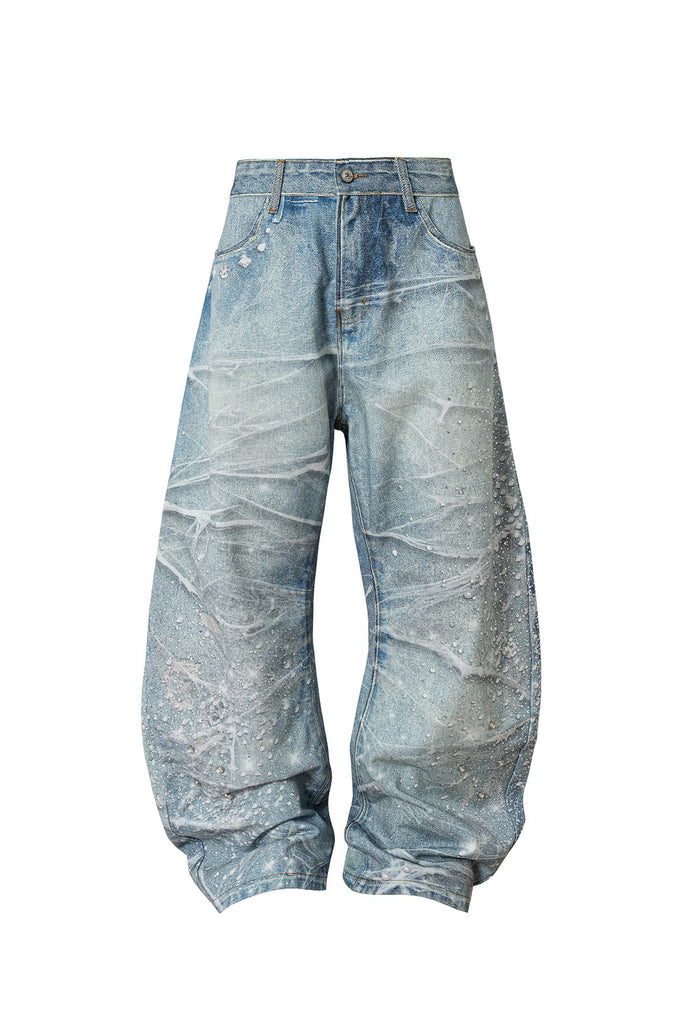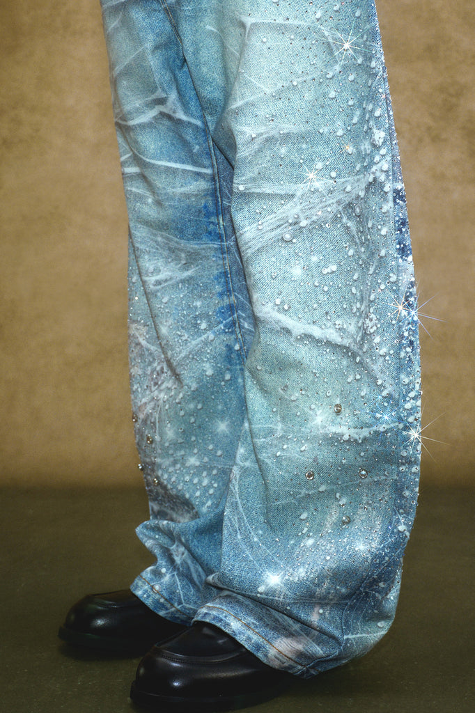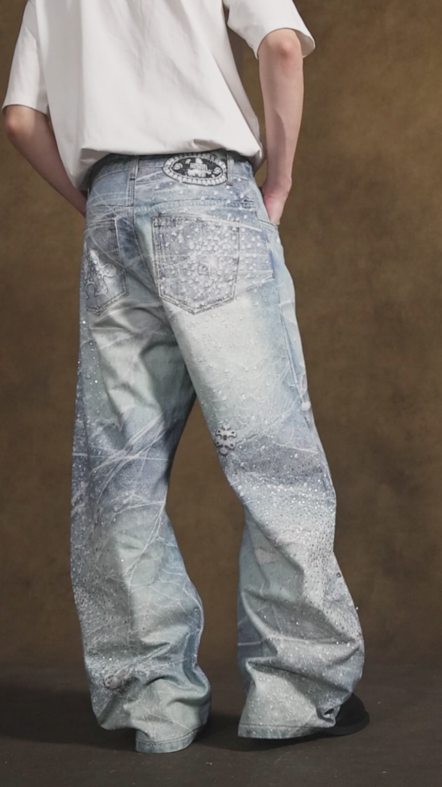Crafted from premium 420G organic cotton, the YADCREW Rhinestone Jeans combine durability with sustainable comfort. Featuring a washed effect and a straight leg silhouette, these jeans offer a modern, versatile fit. The standout 3D printed hot diamond and rhinestone detailing at the hem add an exclusive touch of sophistication and subtle brilliance, elevating your everyday look with expert craftsmanship. Ideal for those seeking style with conscientious quality.
