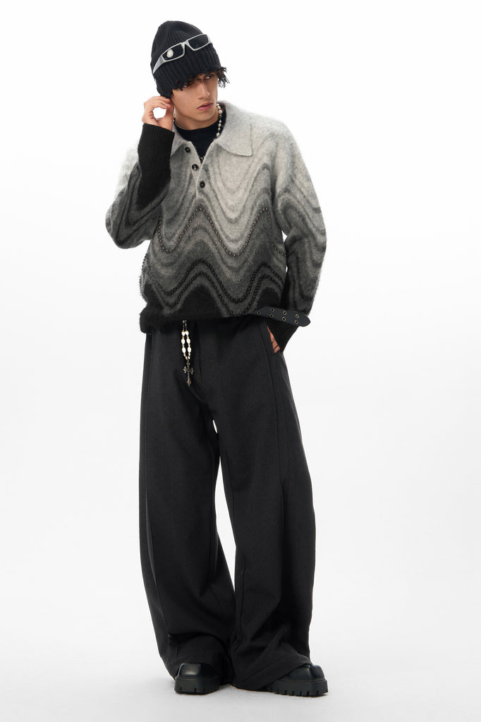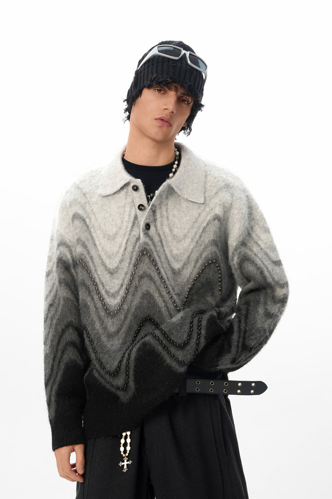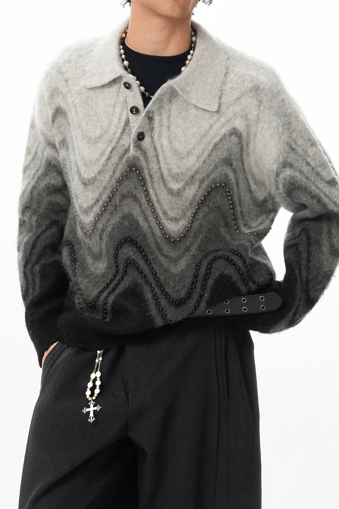 Crafted from a premium blend of acrylic, polyester, and spandex, the JHYQ Beaded Polo Shirt offers a comfortable stretch fit with durability and breathability. Its distinctive black gradient pattern adds depth and modern style, while meticulously attached beading across the front delivers refined texture and visual interest. This shirt combines innovative materials with expert detailing, ideal for those seeking a sophisticated yet contemporary look.