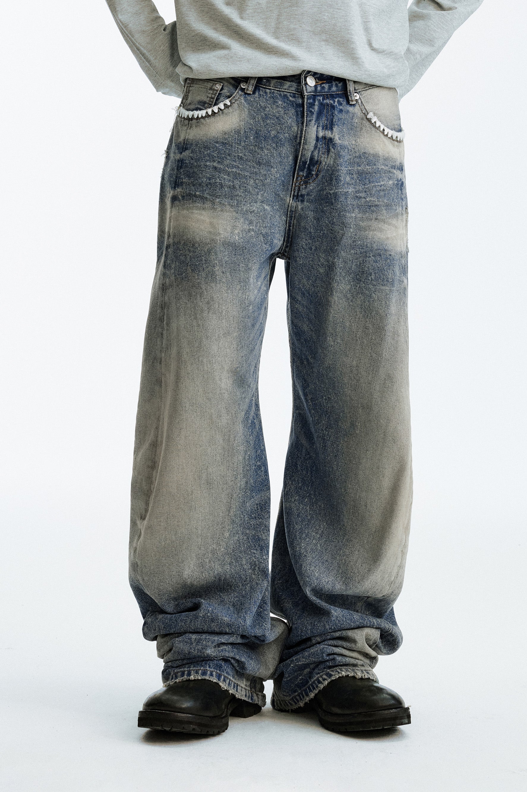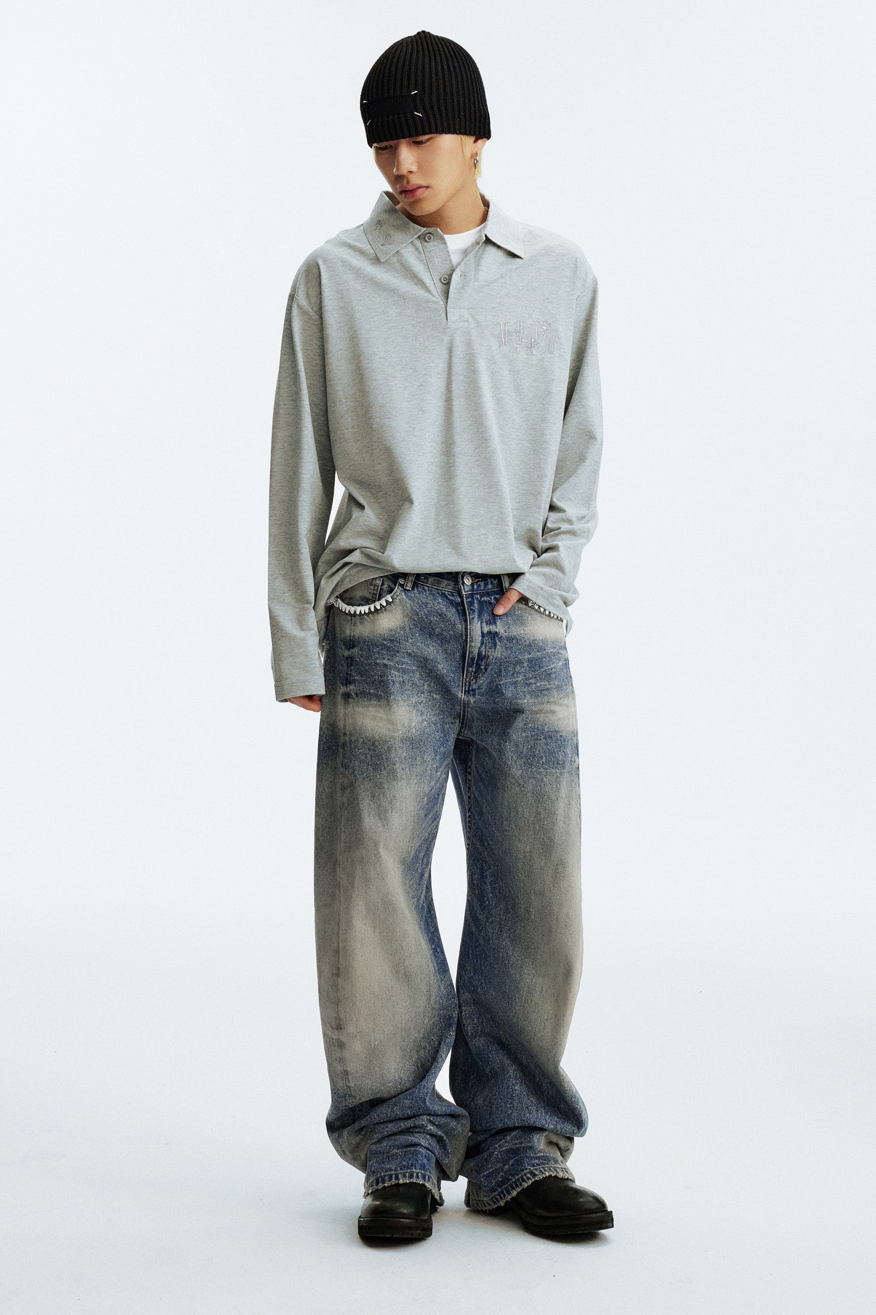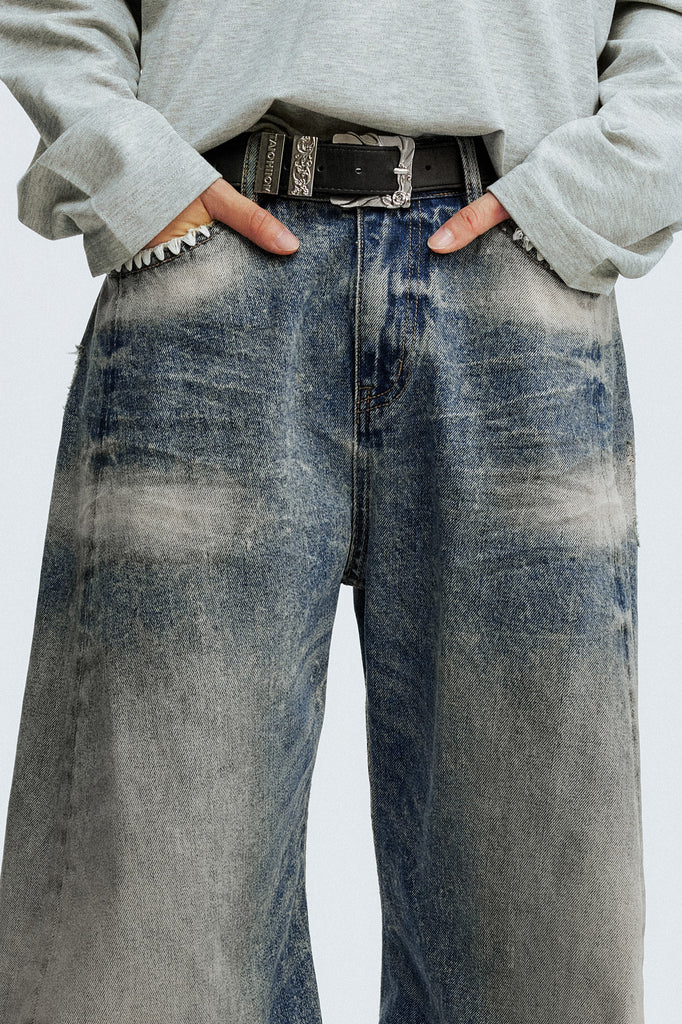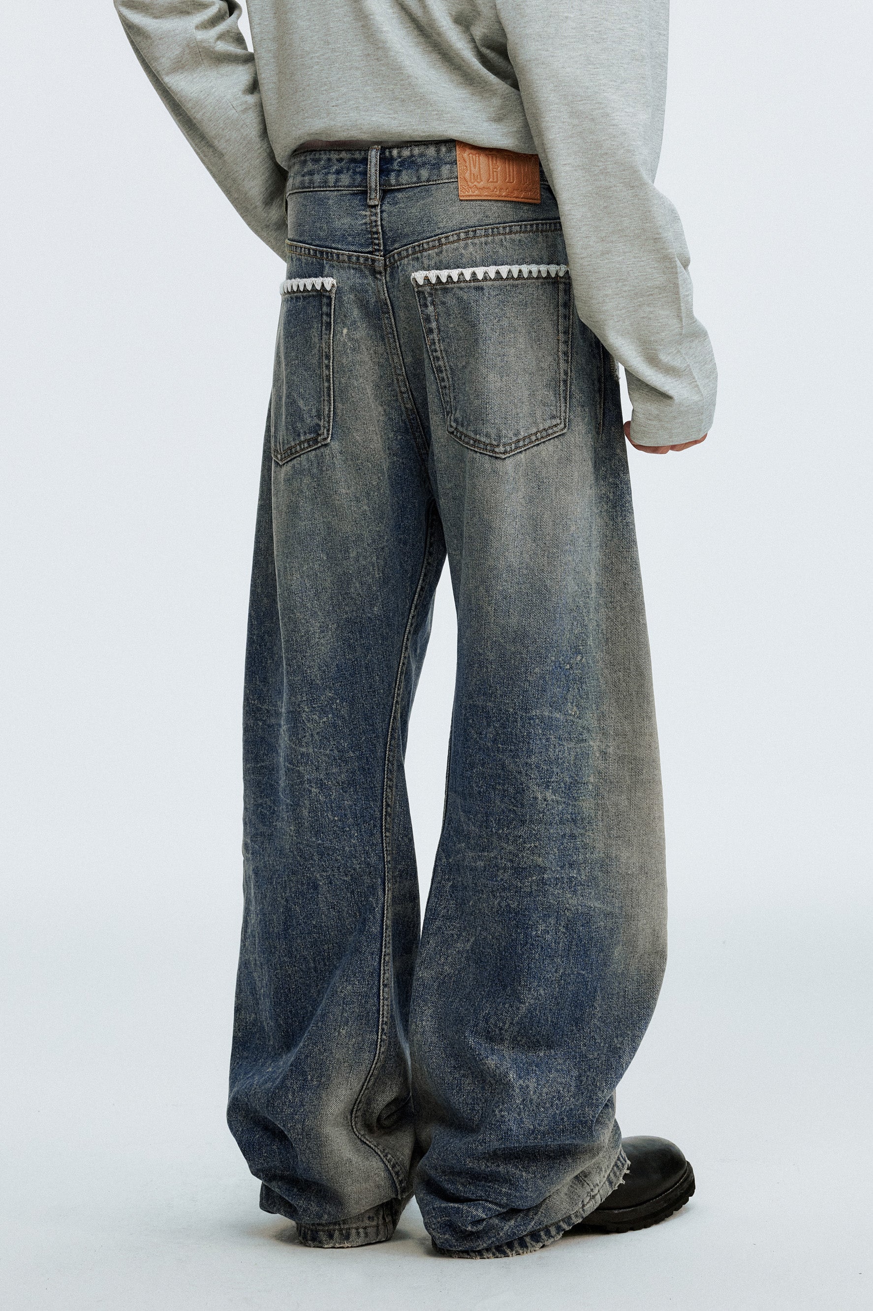 MEDM Washed Jeans combine premium organic cotton with cellulose fiber for a sustainable, breathable fabric that moves with you. The signature washed finish delivers an effortlessly refined aesthetic, while delicate shell embroidery adorning the pocket edges adds an unexpected artisanal touch. Expertly crafted for those who appreciate quality construction and thoughtful design details.