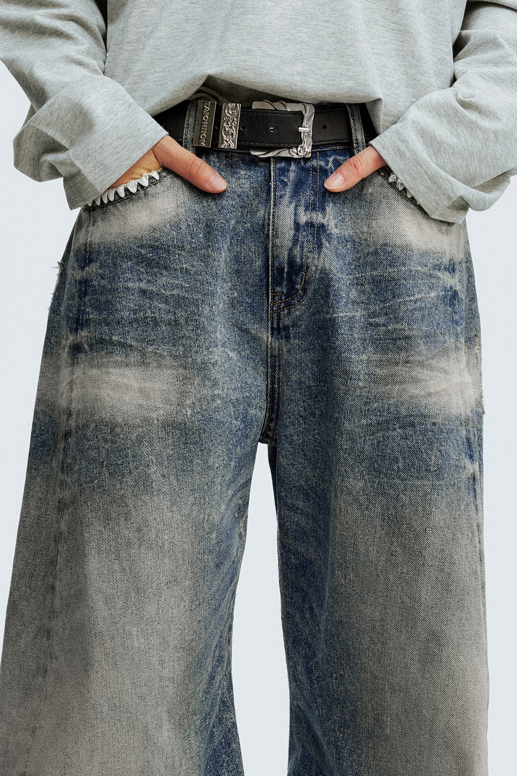 - Color: Washed blue