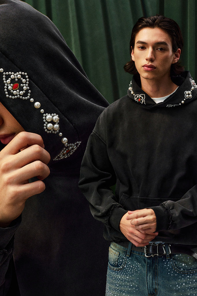 The YADCREW WASHED HOODIE combines organic cotton with polyester for a durable, breathable blend that maintains its shape through regular wear. Intricate beaded embroidery adorns the hood, adding refined detail and visual interest. The washed effect creates a lived-in aesthetic with subtle colour variation, delivering an effortlessly sophisticated look. This piece balances comfort with craftsmanship, ideal for those seeking quality construction and distinctive design elements in their everyday wardrobe.